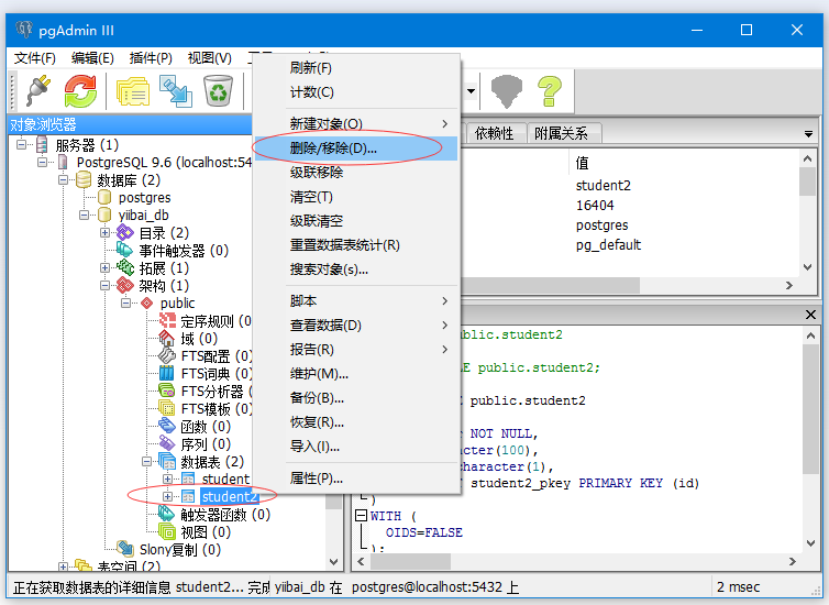 單擊是(Yes),表將被刪除。輸出:現(xiàn)在可以看到?jīng)]有那個student2的表了。
