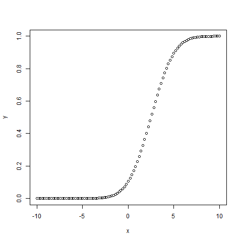 y <- pnorm(x, mean = 2.5, sd = 2)