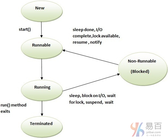 線程生命周期是線程開始和終止的時間跨度。它有各種各樣的階段,如新,可運行,終止,阻止等。線程類提供了各種方法來監(jiān)視線程的狀態(tài)。