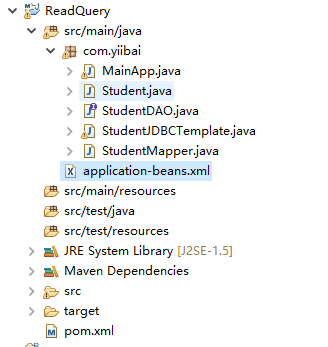 selectQuery - 選擇查詢(xún)學(xué)生數(shù)據(jù)記錄。jdbcTemplateObject - StudentJDBCTemplate 對(duì)象將 Student 對(duì)象插入到數(shù)據(jù)庫(kù)中。StudentMapper - StudentMapper是一個(gè)RowMapper對(duì)象,用于將每個(gè)獲取的記錄映射到Student對(duì)象。要了解上面提到的Spring JDBC相關(guān)的概念,這里創(chuàng)建一個(gè)項(xiàng)目用來(lái)演示如何從Student表讀取數(shù)據(jù)的示例。使用Eclipse IDE,并按照以下步驟創(chuàng)建一個(gè)名稱(chēng)為:ReadQuery 的Spring應(yīng)用程序項(xiàng)目。