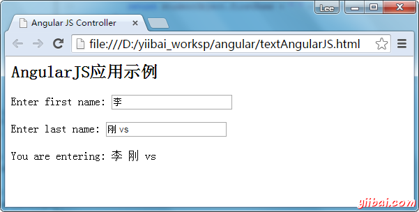 現(xiàn)在,只要輸入名字和姓氏在輸入框中,可以看到全名(fullname)自動更新。