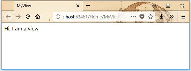 運(yùn)行這個(gè)應(yīng)用程序,并在瀏覽器的URL中添加http://localhost:63461/Home/MyView,然后按回車,將收到以下輸出。