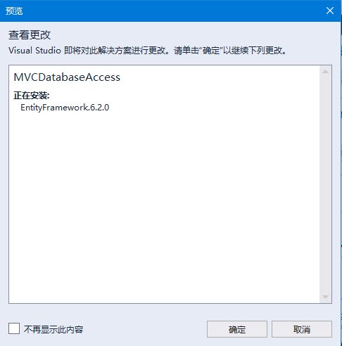 選擇Entity framework,然后點(diǎn)擊“Install”按鈕。它將打開(kāi)預(yù)覽對(duì)話框 -