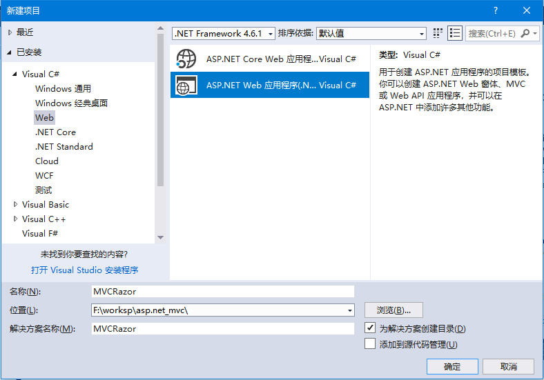 在名稱字段中輸入項目的名稱:MVCRazor,然后單擊確定。如下圖所示 -