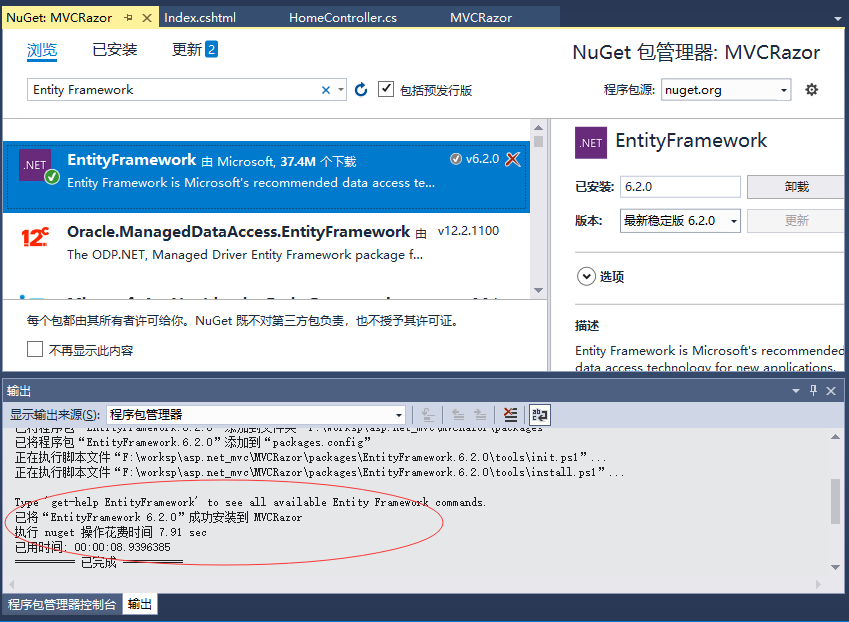 下面來看一個簡單的例子,我們將使用NuGet在ASP.NET MVC項目中添加對Entity框架的支持。