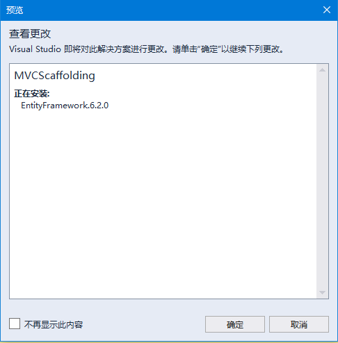 選擇實(shí)體框架(Entity Framework),然后點(diǎn)擊“安裝(Install)” 按鈕。 它將打開預(yù)覽對話框。