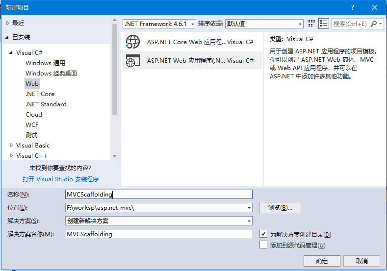 第4步 - 在名稱字段中輸入項(xiàng)目名稱:MVCScaffolding ,然后單擊確定 繼續(xù)。