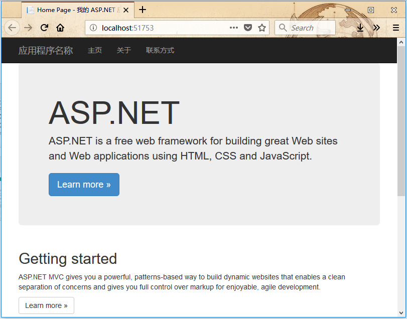 @Html.ActionLink("應(yīng)用程序名稱", "Index", "Home", new { area = "" }, new { @class = "navbar-brand" })