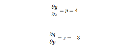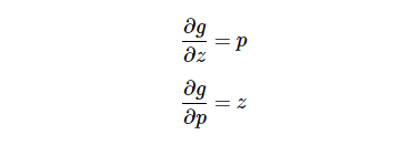 接下來,我們將通過“*”操作進行反向傳遞。將計算p和z處的梯度。 由于g = p * z,所以可以知道 -