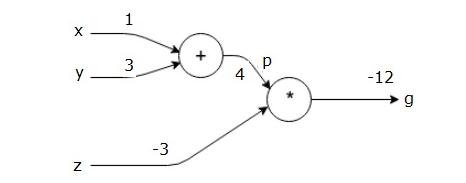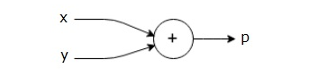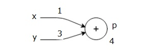 上面的計算圖具有一個加法節(jié)點(具有“+”符號的節(jié)點),其具有兩個輸入變量x和y以及一個輸出q。