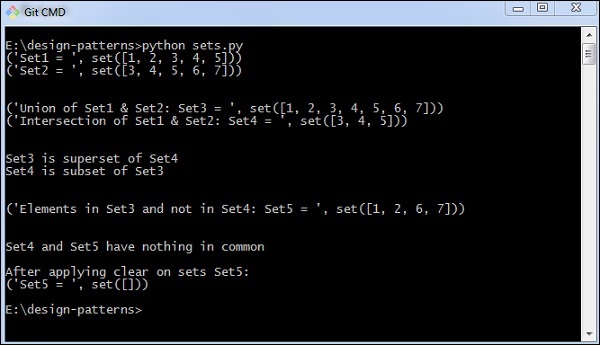 以下程序演示如何實(shí)現(xiàn)集合 -