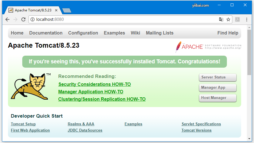 測試運(yùn)行Tomcat服務(wù)器運(yùn)行情況,打開瀏覽器,訪問地址:http://localhost:8080 應(yīng)該會看到類似的界面 -
