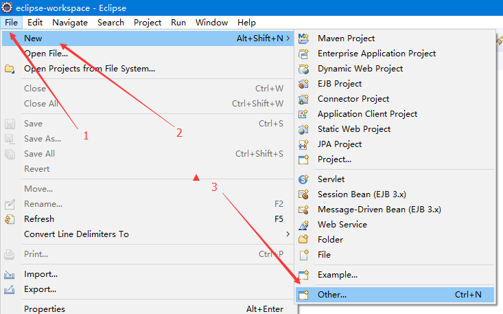 要創(chuàng)建動態(tài)Web項目,首先打開Eclipse,請單擊左上角菜單:File -> New -> Project..-> Web -> Dynamic web project -> 填寫項目名稱,如:servletdemo -> Finish。