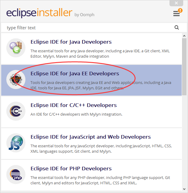 需要安裝的是Eclipse IDE for Java EE Developers 。如下圖所示 -
