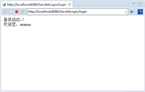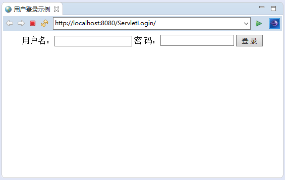 在編寫上面代碼后,部署此Web應(yīng)用程序(在項目名稱上點擊右鍵->”Run On Server…”),打開瀏覽器訪問URL: http://localhost:8080/ServletLogin/ ,如果沒有錯誤,應(yīng)該會看到以下結(jié)果 -
