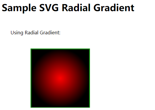 sampleGradient的一個<radialGradient>元素。radialGradient中,兩個偏移量用兩種顏色定義。rect元素中,在填充屬性中,指定漸變的URL以使用之前創(chuàng)建的漸變填充矩形。在Chrome瀏覽器中打開文件:textSVG.html -