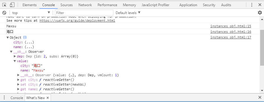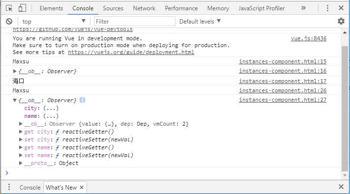console.log(vm.name); - //打印Rajconsole.log(vm.$data.city); - 如上所示打印城市console.log(vm.$data); - 如上所示打印完整的對象
