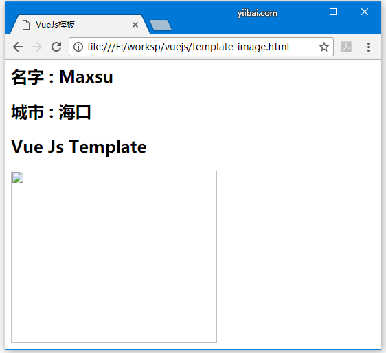 需要在src屬性前添加v-bind:src = "imgsrc"和src的變量名稱。以下是瀏覽器中的輸出結(jié)果 -