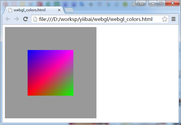 var vertices = [ -0.5,0.5,0.0, -0.5,-0.5,0.0, 0.5,-0.5,0.0, 0.5,0.5,0.0 ]; var colors = [ 0,0,1, 1,0,0, 0,1,0, 1,0,1,]; indices = [3,2,1,3,1,0];