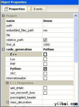給該項目一個合適的名字,并選擇Python作為代碼生成語言。 在對象屬性窗口,如圖下圖 −