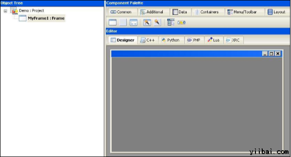 首先 wxFormBuilder 的所有最新版本需要從http://sourceforge.net/projects/wxformbuilder/.下載和從安裝。在打開應用程序時,出現(xiàn)空白的灰色區(qū)域為新項目的中心。