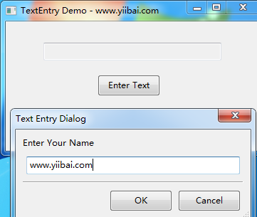 Mywin(None,'TextEntry Demo - www.yiibai.com')